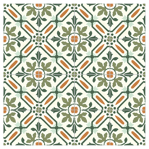 - Le carreau de ciment Clochette : un motif bucolique aux nuances de verts, parfait pour une ambiance naturelle et raffinée.